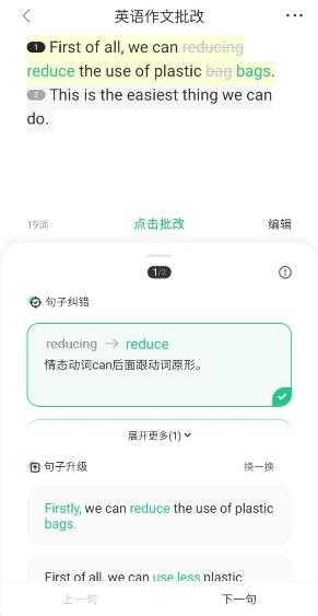 中高考不仅是一次考试,还是一个人生的跳板,改变未来的机遇。许多考生都会通过老师的反馈寻求写作能力的提升,但老师的时间和精力有限,这种方式较被动且反馈周期长;而借助搜狗AI写作助手,考生只需下载搜狗翻译APP,利用“作文批改”功能,几秒后就能收到一份详细的纠错及升级建议。哪里错了?为什么错了?该如何优化?一目了然。只要考生勤加练习,在搜狗AI写作助手的帮助下,有限的时间也能快速提升英语写作能力。